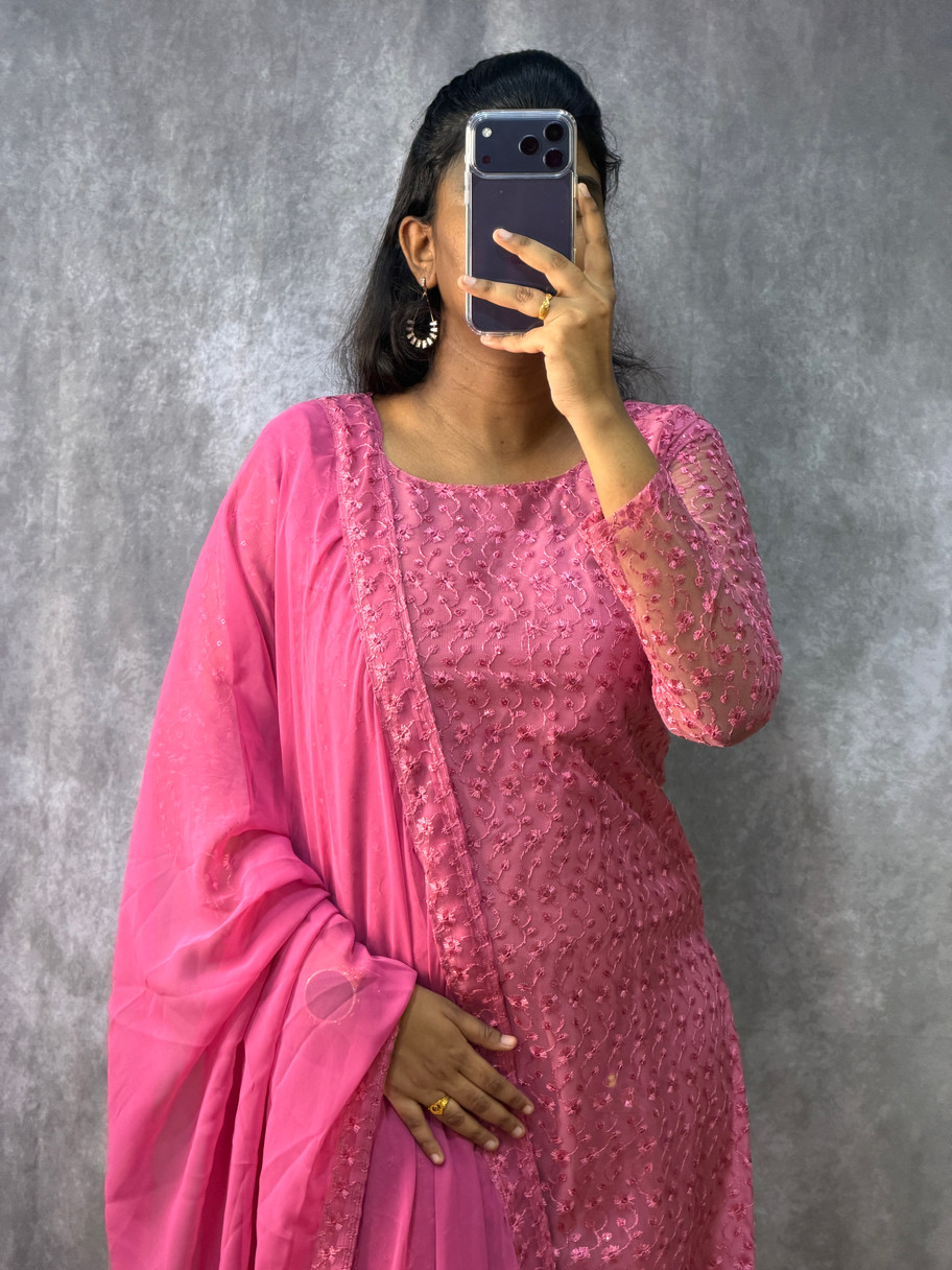 PREMIUM NET CHIKANKARI KURTHI SET🥳