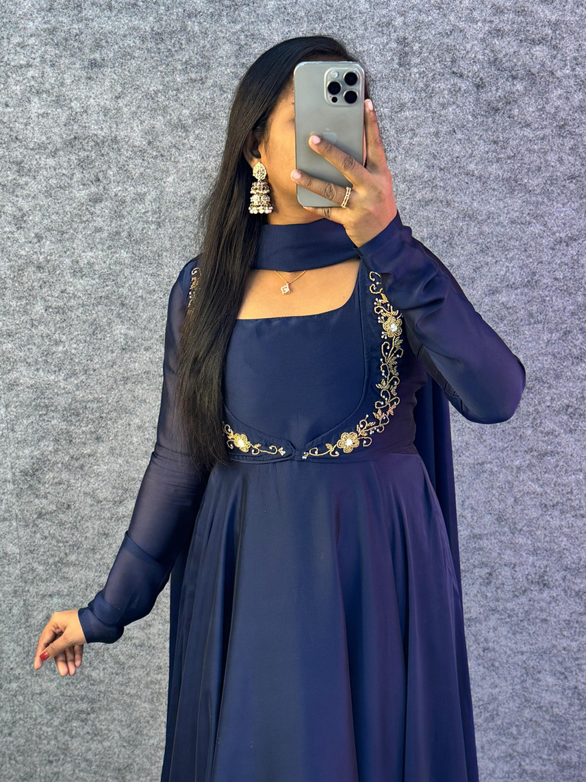 Premium Rangoli Silk Gown + Overcoat+Duppata
